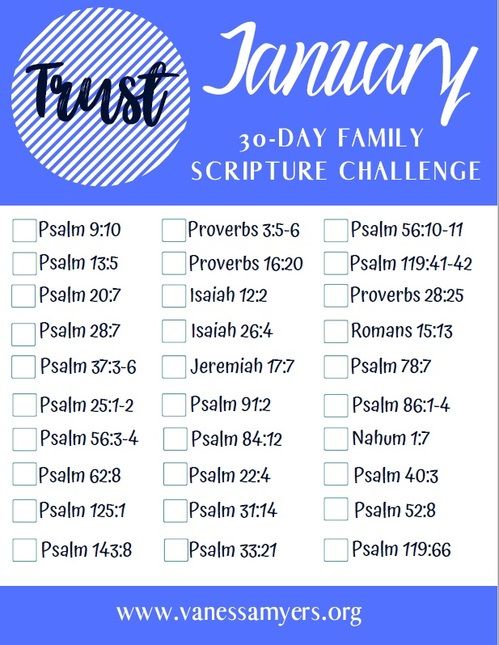 Do you struggle to get your family in the Word? Do you struggle with even knowing where to begin when reading Scripture with your family? Then this challenge is for you! For each month of the year, you are given 30 Scriptures that relate to the theme for the month. Each Scripture is usually 1-2 verses. It's kept simple so your family can easily read and discuss it.