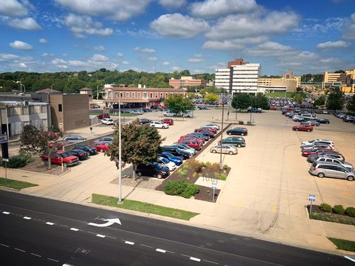 Just across from our main entrances you'll find ample convenient parking. This lot is accessible from NE Perry Ave. or Hamilton Blvd. NE Perry is one way, but be sure to look in both directions before crossing. You'll also notice that there is a drop-off lane on NE Perry just in front of our main campus.